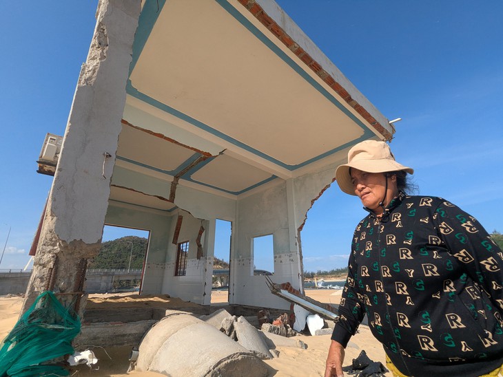 Căn nhà cũ nơi gành biển đã từng bị sóng đánh sập tường, tốc mái hai lần trước khi bị cơn bão số 13 giật sập hoàn toàn.