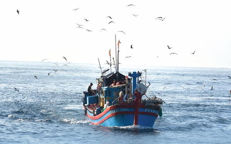 Làng tôi ở vốn làm nghề chài lưới / Nước bao vây, cách biển nửa ngày sông / Khi trời trong, gió nhẹ, sớm mai hồng / Dân trai tráng bơi thuyền đi đánh cá...