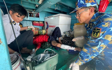 Nhận tín hiệu cầu cứu từ tàu cá, lực lượng quân y nhà giàn DK1/10 (Vùng 2 Hải quân) đã nhanh chóng tiếp cận, cấp cứu kịp thời một ngư dân bị tai nạn lao động nghiêm trọng trong quá trình khai thác hải sản trên biển.